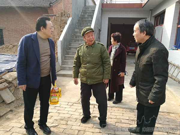 2019年1月29日上午,在新春佳节来临之际,西安市档案馆(局)长崔林带领班子成员来到蓝田县孟村镇双水村看望慰问贫困户,送政策,送关怀,听民声,解民忧,暖民心。崔局长一行首先来到贫困户张韧家中,送上了米面油慰问品,察看了冬季取暖、过冬物资的准备情况,详细询问了两位老人的身体健康状况,张韧老人非常激动的说:“党的政策好,我和老伴几次做手术,看病花费近40万全部由政府负担。帮扶干部每周都来帮助干这干那,有任何困难都能及时解决”。在贫困户赵启志家中,崔局长一行仔细询问了孩子的病情和治疗情况、年货准备情况及越冬取暖等情况,叮嘱老人要保重身体,有困难就及时找帮扶干部协调解决。赵启志老人非常高兴说:“现在家里什么也不缺,这都要感谢党的好政策。”