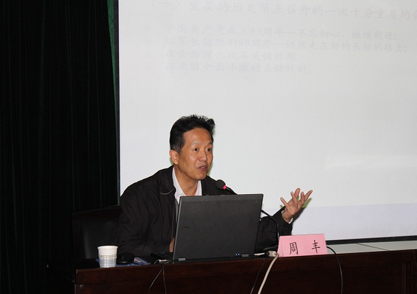 11月22日,西安市档案馆(局)邀请市委十八届六中全会精神宣讲团成员,市委党校哲学教研部主任、教授周丰以《深入学习贯彻党的十八届六中全会精神》为题目对馆(局)全体干部进行辅导学习,馆(局)长崔林主持报告会。