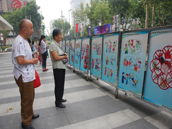 过往群众观看档案法制宣传展板