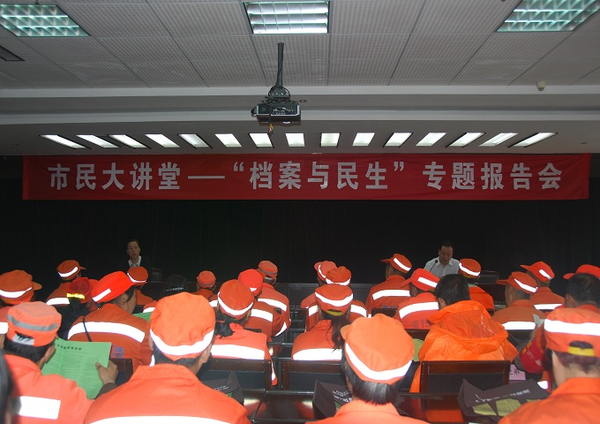 来自未央区的40余名环卫工人走进西安市档案馆,聆听了市档案馆保管利用处处长赵勇所作的“档案与民生”专题报告,了解了档案的发展历史,市档案馆的馆藏结构与内容,档案与民生的关系,怎样查阅档案等相关知识。之后,还实地参观了查档接待室,并观看《古都记忆——西安历史文化图片展》、《西安市档案馆馆藏珍品陈列展》、《西安市对外交往礼品陈列展》,近距离接触档案,切身感受档案的魅力,体验档案与民生的休戚相关,了解档案工作的价值。为增强宣传效果,确保参观活动有序进行,活动期间,配有专门的引导员和讲解人员。