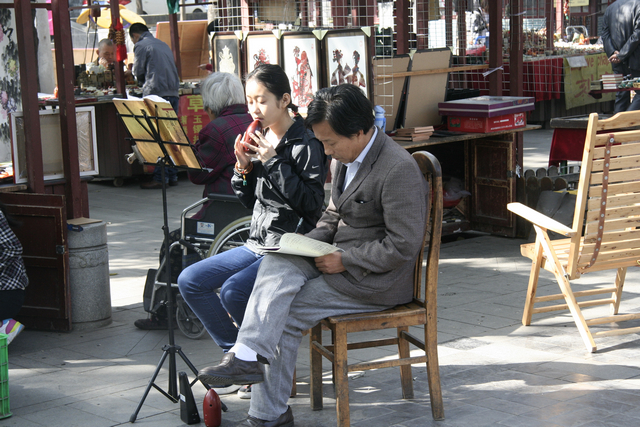 三学街一对师徒现场演奏埙