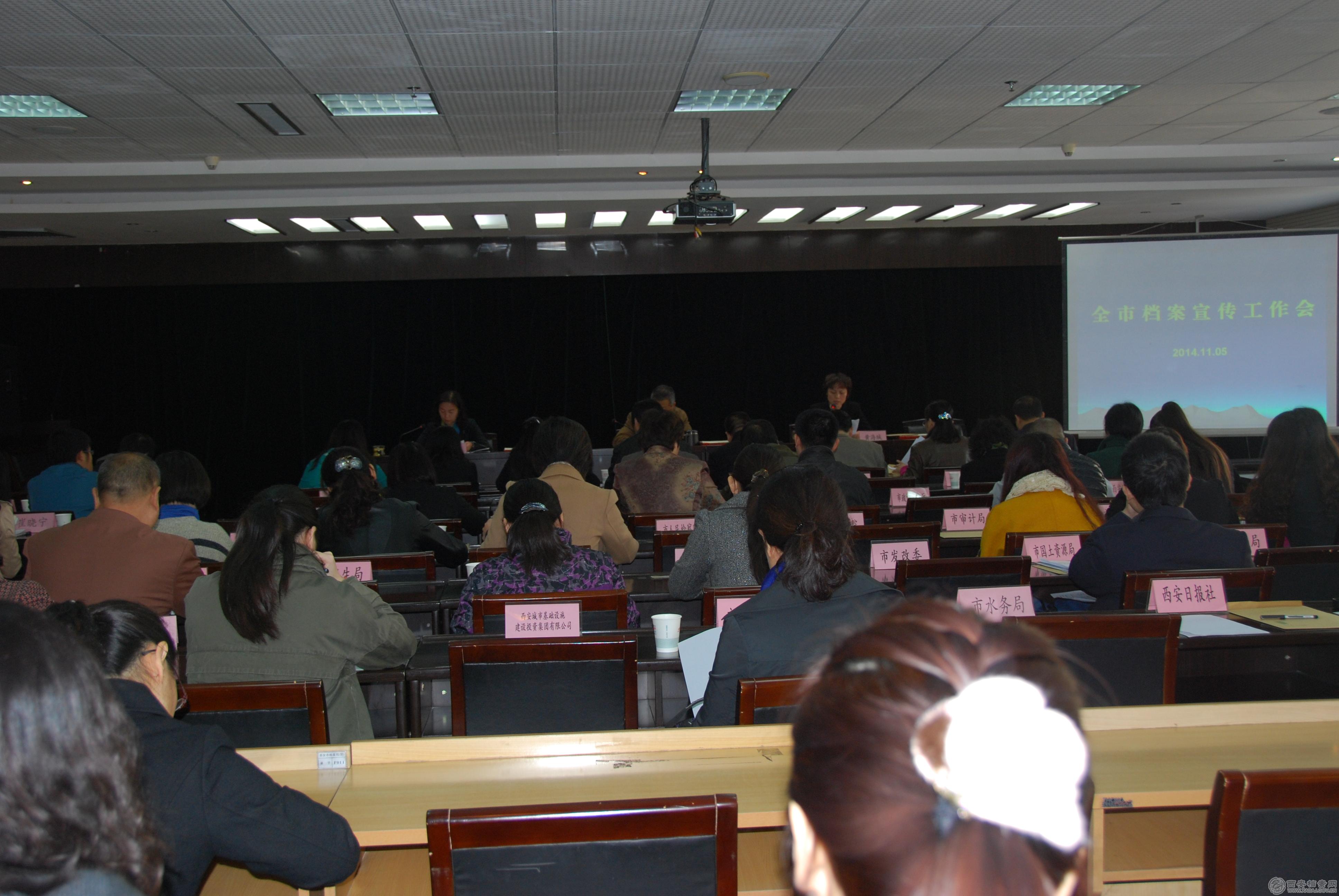 2014年11月5日,西安市档案宣传工作会议召开。会议的主要任务是传达全国、全省档案宣传工作会议精神,全面总结2014年度全市档案宣传工作,安排部署今年第四季度和2015年度全市档案宣传工作。全市各区县档案局、市城建档案馆分管宣传工作的局(馆)长、宣传干部以及市级机关各单位档案干部共60余人参加了会议。市档案局局长尤晓民出席会议并作重要讲话。会议由市档案局副局长黄海绒主持。
