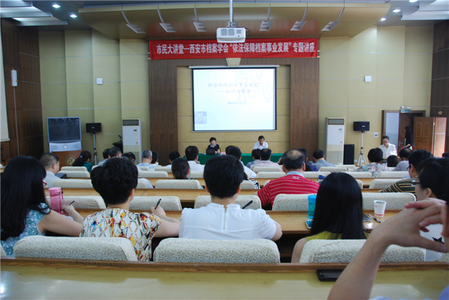 郭嗣平司长的授课内容丰富,观点新颖,生动活泼,发自肺腑,听后深受教育和启发。促使广大档案干部从本职工作出发加深了档案工作的认识,深刻领会档案工作的重要性和神圣职责,增添了对档案职业的敬意,并激发了进一步做好档案工作的信心和决心。从而立足本职,爱岗敬业,进一步搞好我市档案工作,为西安建设国际化大都市作出应有的贡献。(文:杨朝 摄影:赵霄震)