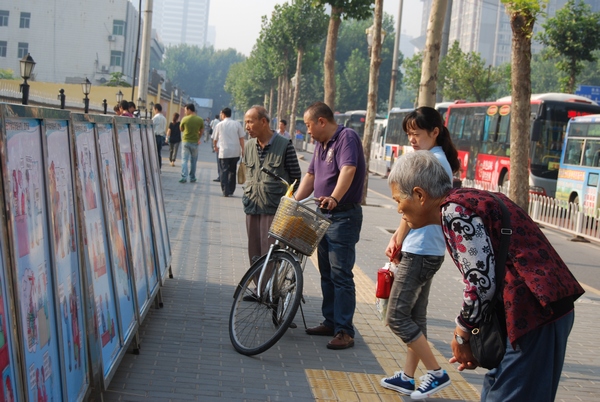 市民观看西安市档案局制作的档案法制宣传漫画展