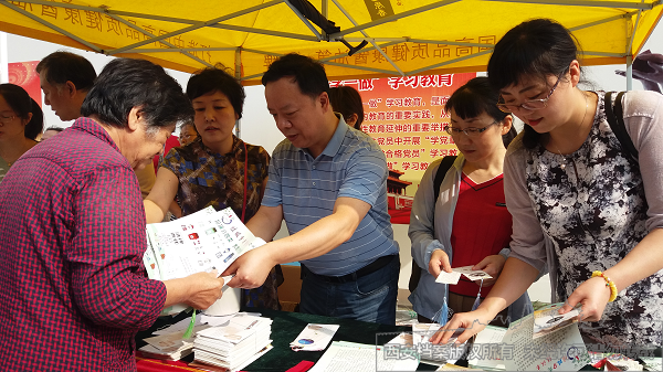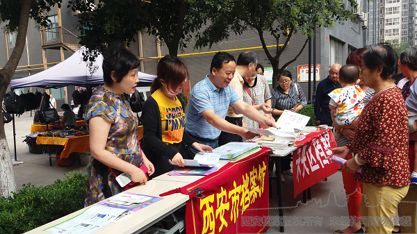 为纪念《中华人民共和国档案法》颁布32周年,进一步深入普及档案法制知识,2019年9月5日,西安市档案馆联合未央区档案馆、张家堡街道和汉城街道走进社区,共同开展宣传咨询活动。当日上午,先后在张家堡街道王前社区、汉城街道海红社区设立宣传站点,向社区群众发放档案法制宣传单,赠送档案文化创意书签,深入宣传《档案法》《西安市档案管理条例》《档案管理违法违纪行为处分规定》等档案法律法规知识、档案服务利用相关内容,开展档案咨询,营造浓厚的档案法制宣传氛围。现场同时赠送的实用微型垃圾桶等生活用品也受到群众欢迎。