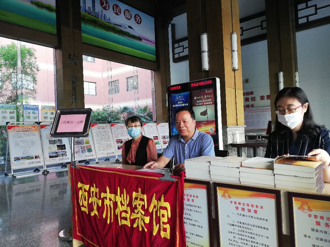 为纪念《中华人民共和国档案法》颁布33周年,进一步普及档案法制知识,增强社会档案意识,2020年9月4日,西安市档案馆在大厅设立宣传站点,向查档群众发放《中华人民共和国档案法》小红漫画册,赠送档案编研书籍,以此宣传《档案法》《西安市档案管理条例》《档案管理违法违纪行为处分规定》等档案法律法规知识、档案服务利用相关内容,开展档案咨询,营造浓厚的档案法制宣传氛围。