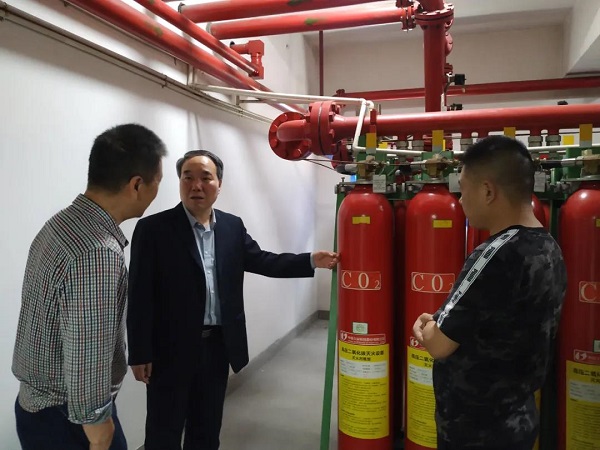 馆安全领导小组副组长、副馆长吴立民带领各处处长、物业人员检查档案库房、消防设备等