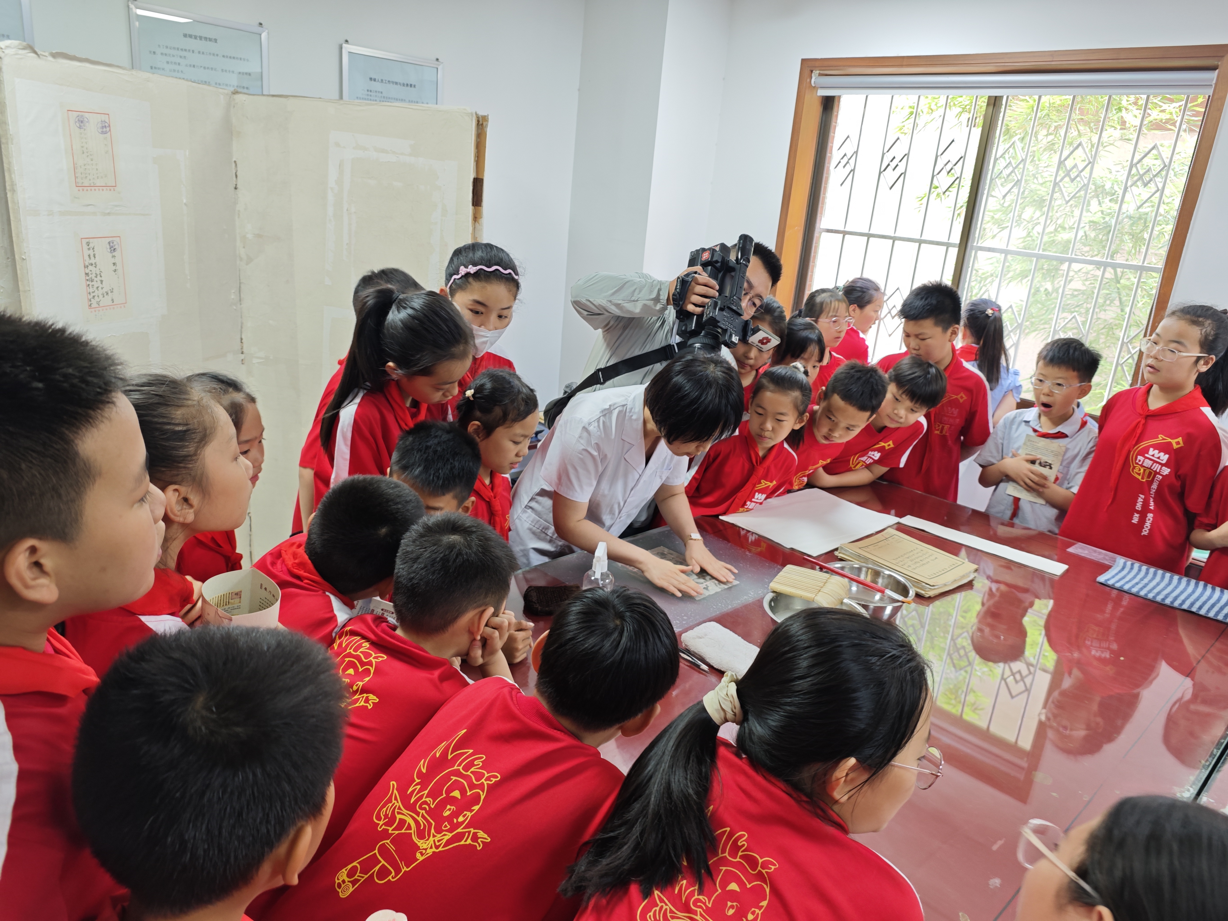当日上午,西安市未央区南康小学学生52人来馆参观学习,他们是“档案离你有多近”档案馆开放日活动的首批来客。孩子们欢呼雀跃地进入档案馆,好奇的眼光左顾右盼,争先恐后地观看《520 我的城》庆祝西安解放75周年宣传片。讲解员用孩子们听得懂、感兴趣的语言,介绍档案、档案馆以及展览内容。在档案修复裱糊室,孩子围在台面一圈,静静地听档案馆老师讲解破损档案怎么修复,看老师如何喷雾修裱。当修裱好的档案纸张上墙的一刻,同学们纷纷鼓掌,小手拍个不停。档案馆的老师向孩子们现场展示手中的档案,说这本档案已经保存了45年了,我们还有保存了100年的档案呢!孩子们不禁发出了“呜”的一阵惊呼。当被问及对档案馆有什么印象时,一个小学生回答:“看到了以前没有看到的东西,增长了知识。”这次活动档案馆还精心设计了打卡环节,小学生们争相亲自盖印打卡,表示今天我来过档案馆啦。带队老师临别时表示,以后还想带同学们来档案馆体验,在档案馆组织开展少先队活动。