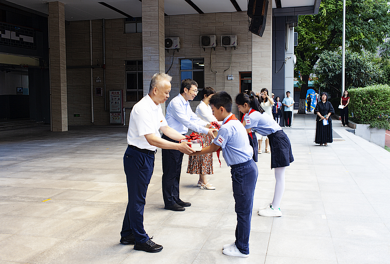 新城区副区长雪帆在讲话中对同学们提出了三点希望:一是牢记谆谆教导,志存高远,明德笃行。二是讲好红色故事,薪火相传,接续奋斗。三是投身社会实践,博学不穷,增长本领。并对老师们提出了既要做精通专业知识的“经师”,又要做涵养品德“人师”的要求。不断提升自己的政治素质和履职能力,坚定地做少年儿童的亲密朋友和指导者。