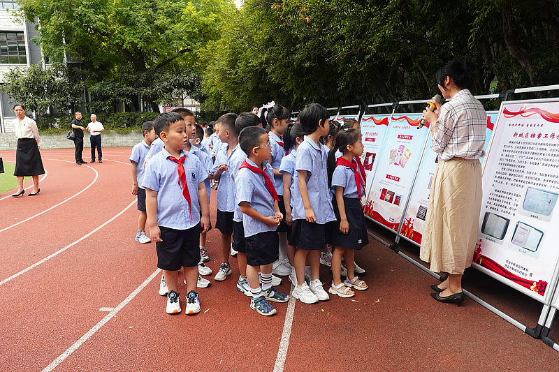 为庆祝新中国成立75周年,深入学习宣传贯彻党的二十届三中全会精神,进一步深入贯彻落实《中华人民共和国档案法》,充分发挥西安市档案馆省级爱国主义教育基地功能作用,开发利用“5·20天安门广场升挂国旗”这一独特红色档案资源,着力开展档案文化进机关、进社区、进企业、进学校、进乡村、进网络“六进”活动,西安市档案局、档案馆在国庆节前夕,结合“扣好人生第一粒扣子”大思政课和“9·5”档案法宣传,联合各区县档案局、档案馆,在全市13所中小学校集中开展“国旗进校园 爱国爱西安”系列主题实践活动,赓续红色血脉,传承红色基因,唱响“强国复兴有我”时代主旋律。
