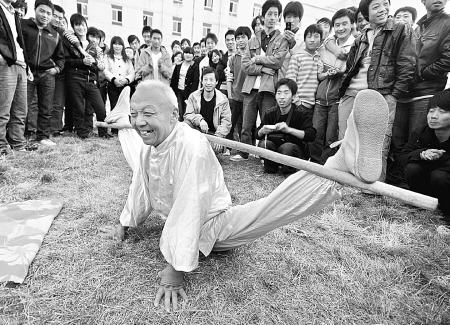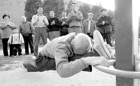 随着生活质量的提高,老人们对文化娱乐等精神需求日渐增高。在与“西安绝活大队”的老人们共同锻炼身体的同时,许多老人找到了自己的乐趣,逐步挑战极限,练就了惊人的绝活。他们不但成了众多老年人参与健身运动的榜样,更成为老年人老有所乐的代表。他们用自己的行动带动更多的老年人,更显“夕阳红”。文/图 记者 王健(转自西安晚报2008-12-07 12版周末视角栏目)