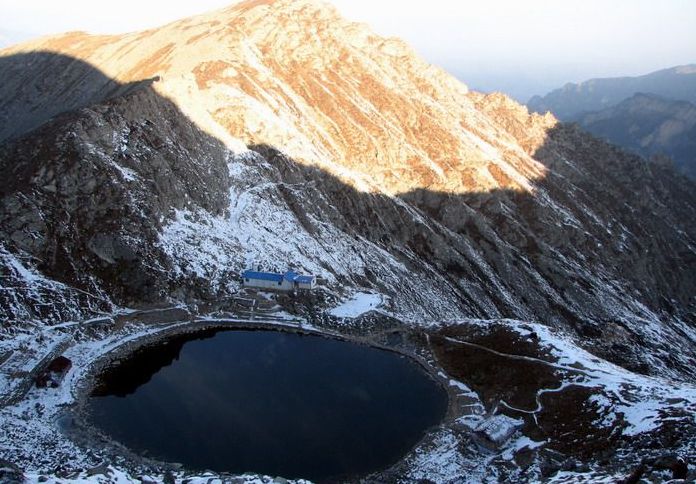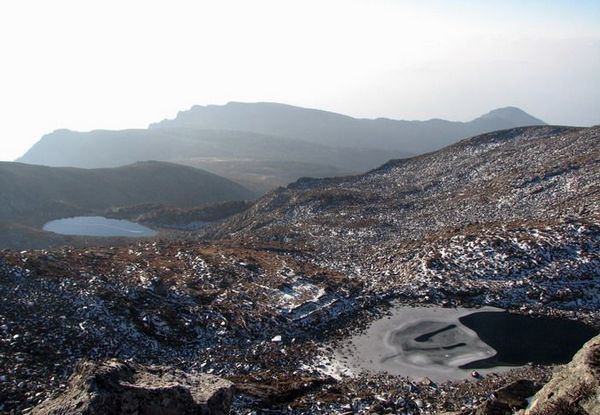 望着远处气势恢宏的雪山,心中肃然起敬,人站在这样的高山旁是那么的渺小,如此雄浑的大自然要吞没一个生命又是何其得简单。突然想起上山之前陈满良先生曾经提起的一件事,五六年前的一个“五一”,一群上海的大学生从太白山南坡的厚畛子一路攀登到大爷海,一个学生落了单,他离开帐篷去找路,却没能再回到自己的帐篷,五月九日突然天降大雪,他就那样被冻死在山上。此刻,面对着大自然经过了上亿年塑造出来的太白山,才发现人的力量是那么得微不足道。
