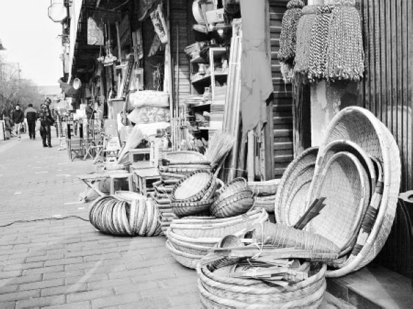 身处市中心的竹笆市,与东、西大街的喧嚣相比,显得安静闲适。走过“达仁堂”、“阿房宫”、“樊记”这些老字号,便能看见一家接一家的小店铺,这里的店铺多以销售家具为业,仅有少数几家仍在经营小件的竹制品。记者询问了几家店主,他们都是近几年才搬来的,并不是这里的老住户,而且销售的竹器也是从厂家批发来的成品。一位店主告诉记者:“现在竹笆市里的店家,基本上都是这些年迁来的。这里也没有人会做竹器了,我们卖的都是厂家生产的。”