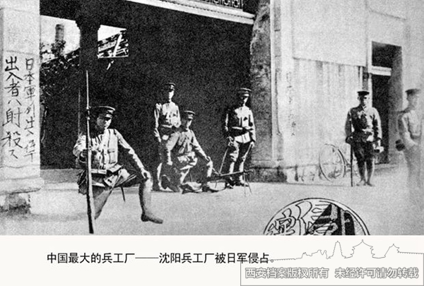 九一八事变是日本发动的蓄谋已久的侵华战争,武装侵略首先从中国东北开始。由于国民党政府的对日妥协退让政策,张学良的东北军大部不战而退,短短四个月,东北全部沦陷,损失惨重。1931年9月19日,日军占领了东北的政治经济文化中心沈阳,图1照片显示当时中国最大的兵工厂——沈阳兵工厂也被日军侵占。