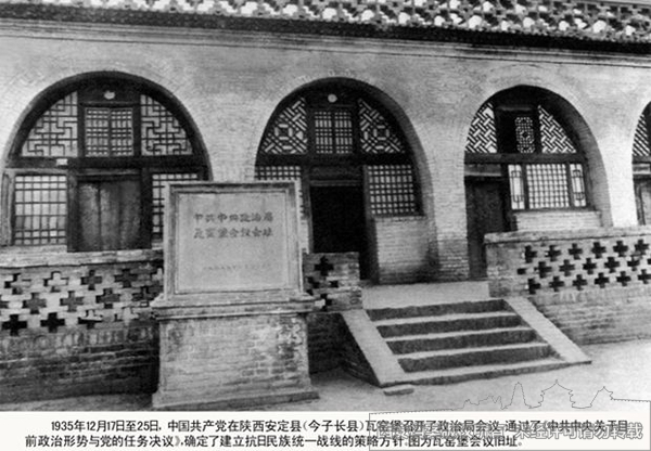 瓦窑堡会议上不但正确分析了国内形势,还提出了建立抗日民族统一战线的策略方针,并决定首先对张学良、杨虎城进行统战合作,建立西北地区抗日民族统一战线。图2为瓦窑堡会议旧址。
