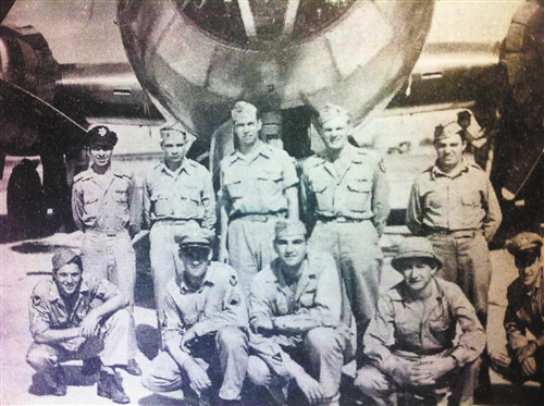 1944年的11月21日,同属美国陆军第二十航空队第462轰炸大队770中队的斯坦·布朗上尉机组驾驶B-29轰炸机,执行空袭日本九州飞机制造厂的任务后,在飞机负伤、燃料用尽的情况下,成功迫降于重庆珊瑚坝机场。图为斯坦·布朗上尉机组部分成员。