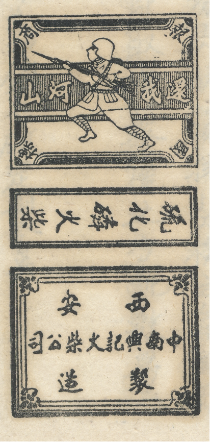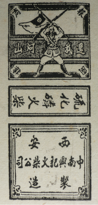 1941年改名为中南兴记火柴股份有限公司,于11月5日送商标局申请注册报国商标。商标图样为一中华民国军人以蹲马步站立,上身挺直全副武装,左手持中华民国国旗,右手持枪,枪与国旗旗杆成十字交叉,图样中央从左至右印有“还我河山”四字,“还我”两字位于军人之左侧,“河山”两字位于军人之右侧,图标四角分别印有“报国商标”四个字,现藏西安市档案馆。因商标正面出现中华民国国旗,依据中华民国商标法第二条第一款之相同或近似于中华民国国旗者均不得作为商标呈请注册的规定而未被注册。1942年5月16日将更换图样后的报国商标送中华民国经济部商标局备审司呈请注册,经审查合格后,由商标局以川查字第九五九六号通知,发给报国商标第三三六四六号审定书,经批准的报国商标图样为一中华民国军人全副武装持枪成刺杀状,图样其他地方与修改前一致,现藏西安市档案馆。