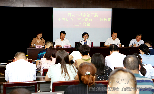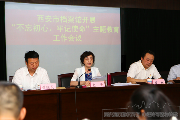 2019年6月12日下午,西安市档案馆召开“不忘初心、牢记使命”主题教育工作会议。会议的主要任务是深入贯彻落实中央、省市委精神,对档案馆开展“不忘初心、牢记使命”主题教育进行全面动员。市委巡回指导二组组长史青,副组长黄晓民及有关工作人员出席会议。